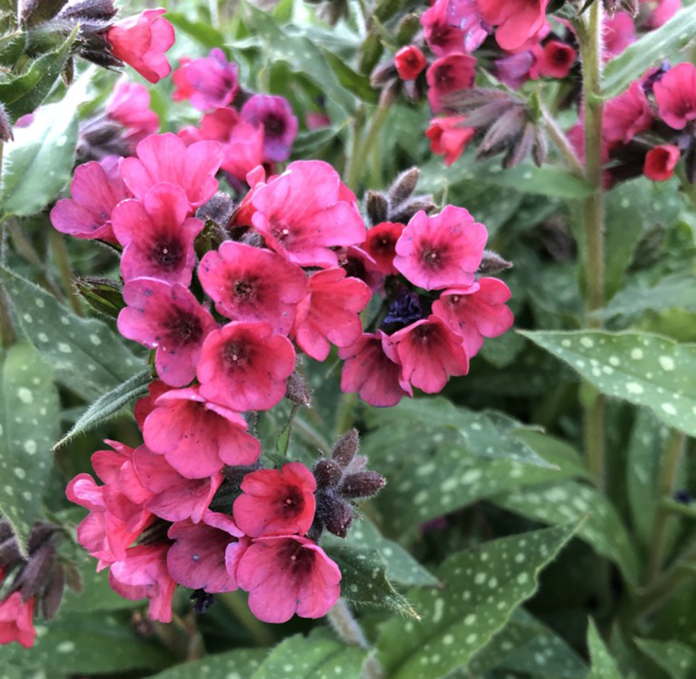 L-R: Clockwise: Heuchera ‘Indian Summer Silverberry’, Echinacea ‘SunSeekers Pink Grapefruit’, Lupinus ‘WestCountry King Canute’, Pulmonaria ‘Lisa Marie’, Leucanthemum ‘Real Tiny Bubbles’, Geum ‘Orange Pumpkin’